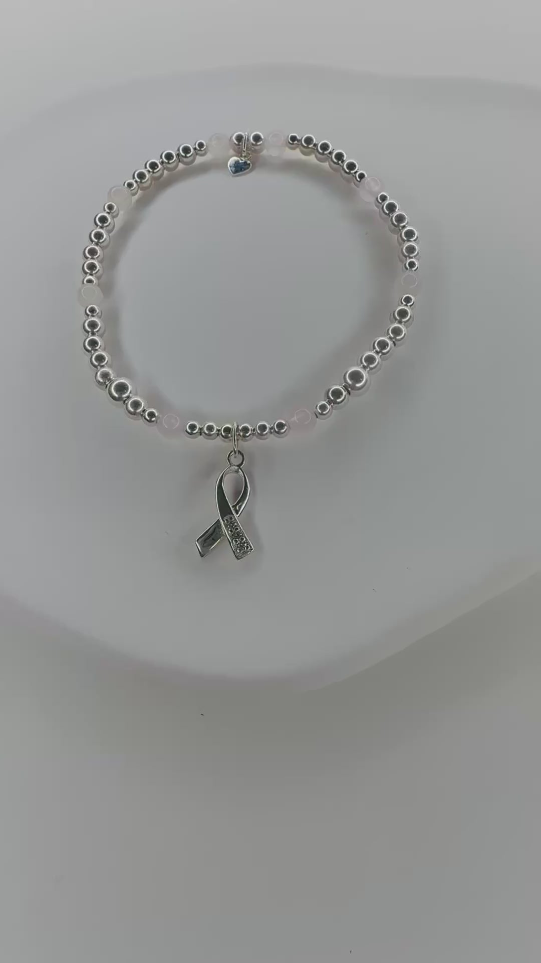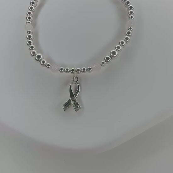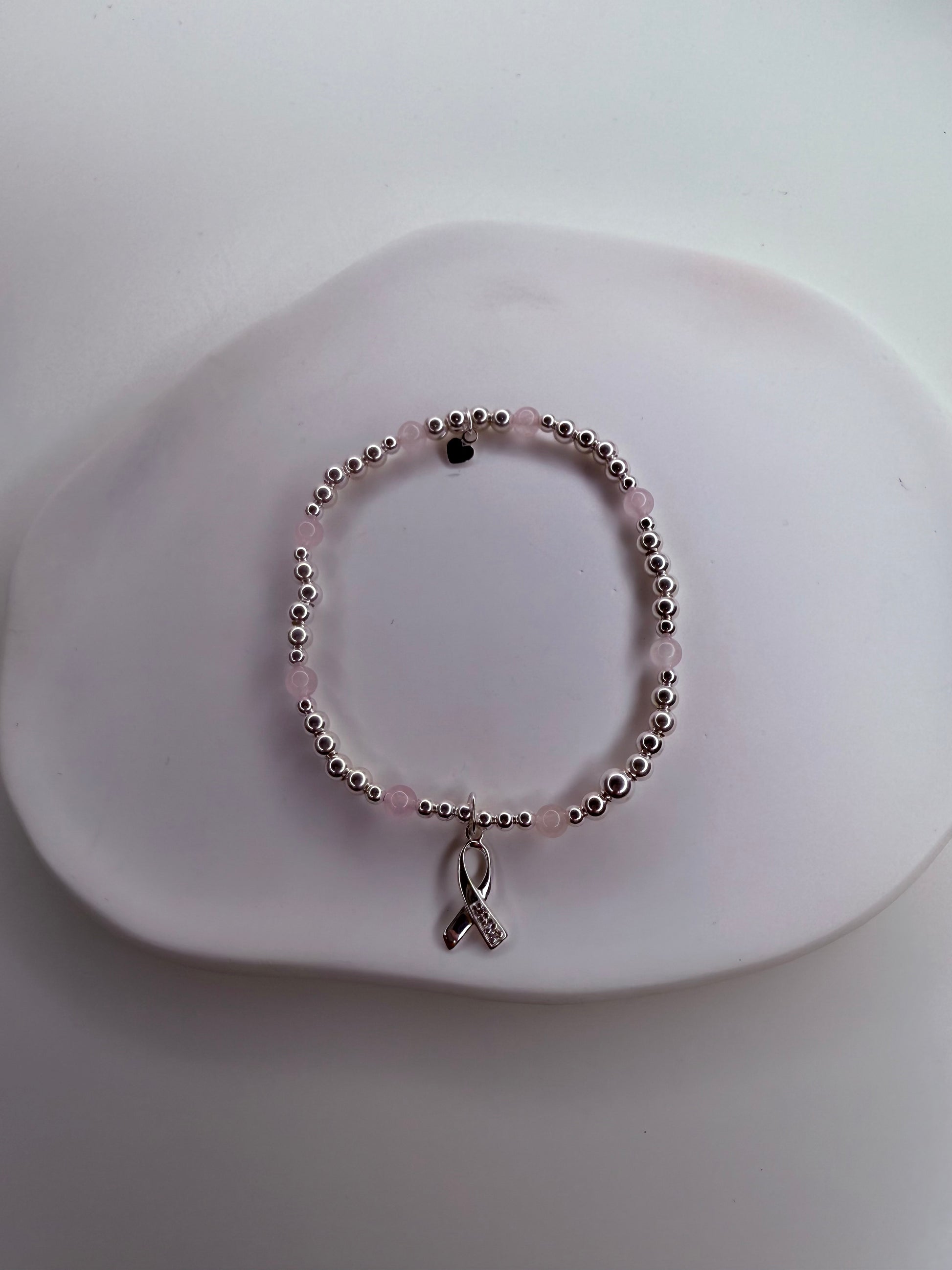 This sterling sliver and rose quartz bracelet is a lovely way to support a loved one or to remember a loved one, or maybe reminding yourself how brave you have been and how far you have come!