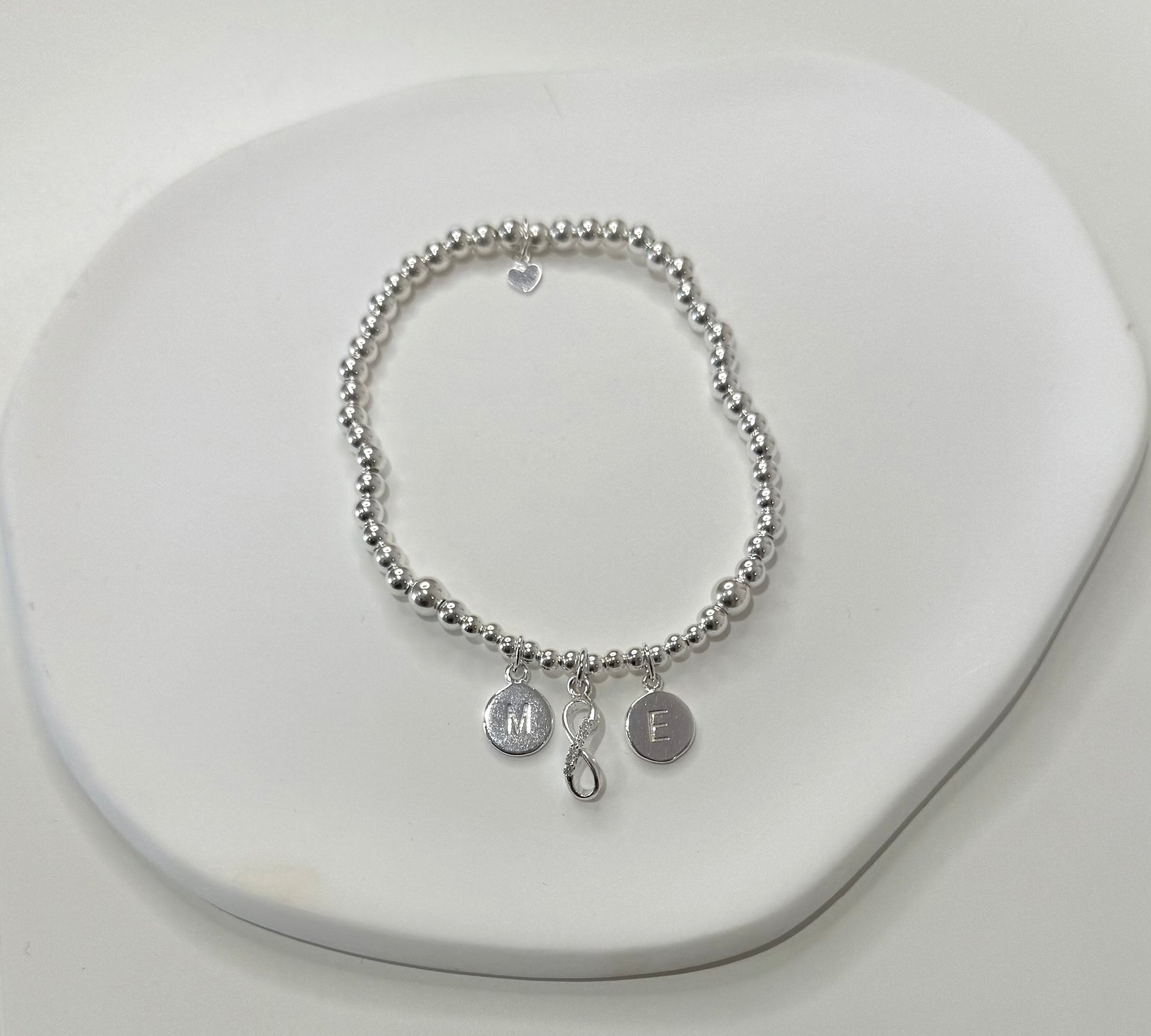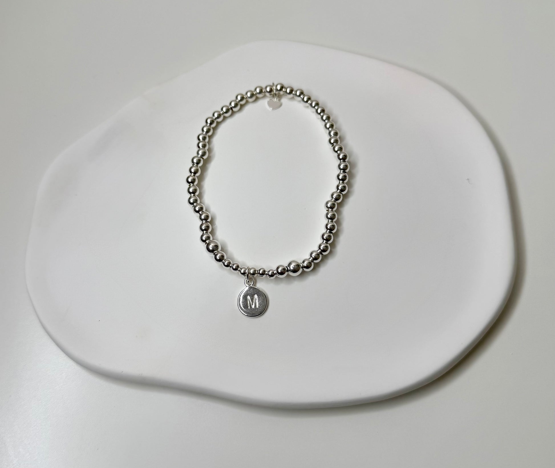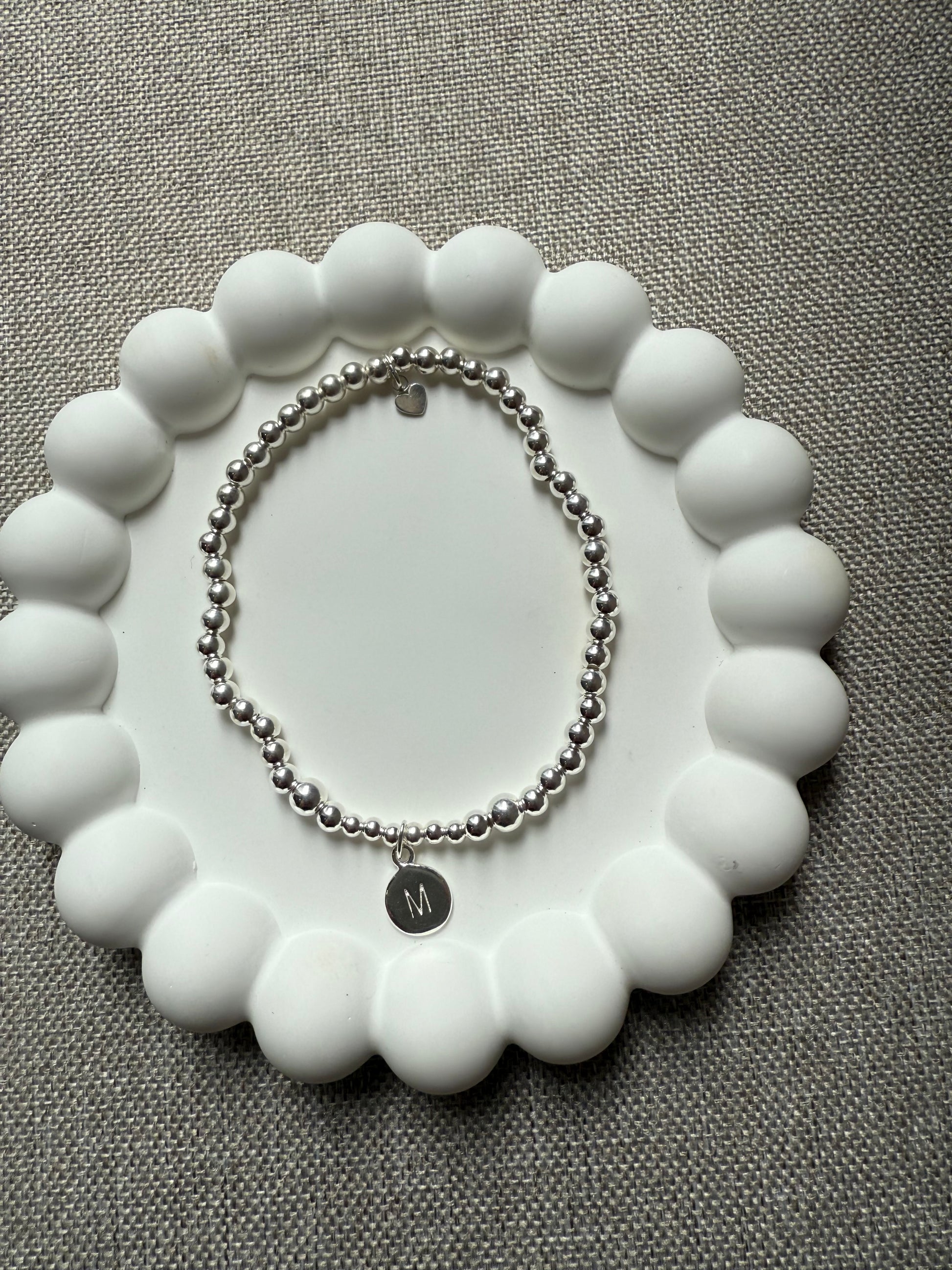 Sidney's beautiful sterling silver beaded bracelet is the perfect personalised keepsake. Finished with 4mm round initial discs, this bracelet makes a thoughtful gift or just to treat yourself.