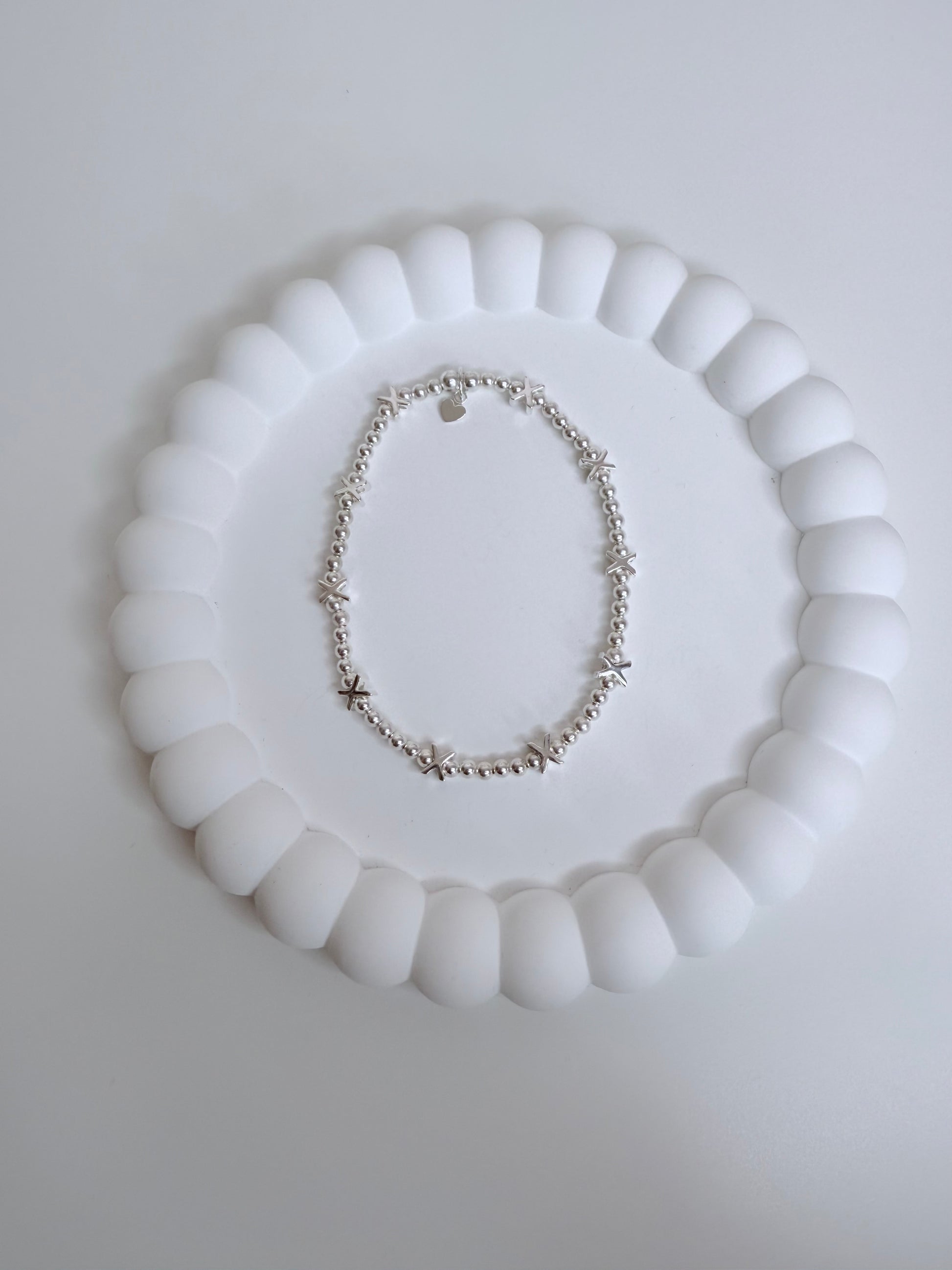 Made with sterling sliver kisses and 3mm sterling silver beads it’s so easy to wear alone or to add to your Sidney’s stack.