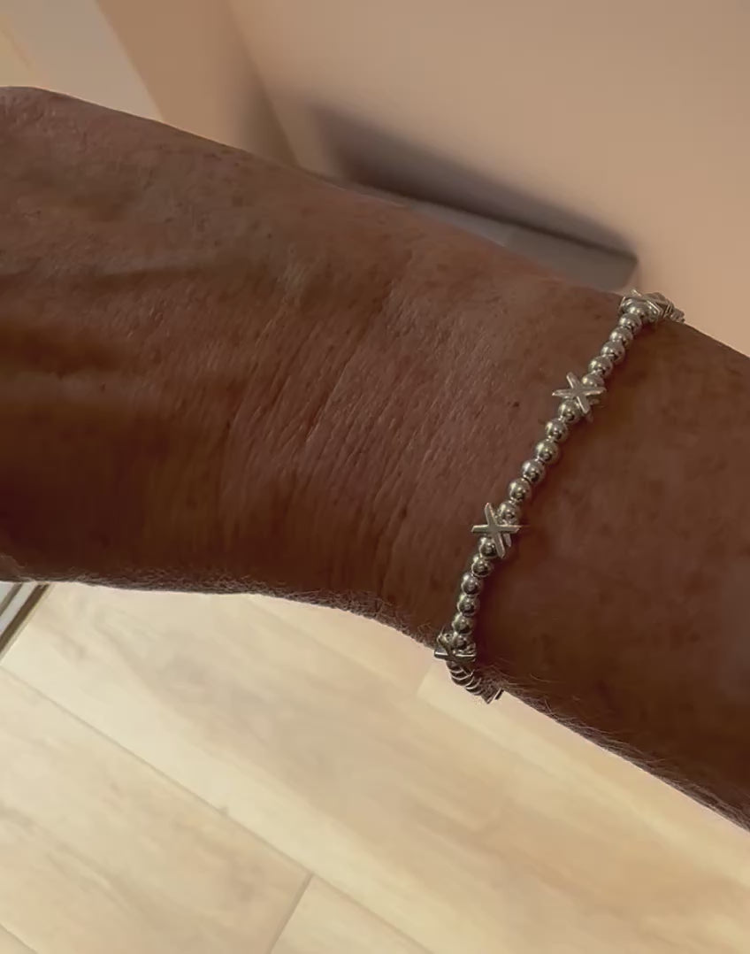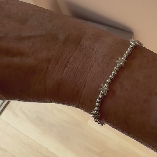 Also available in 4mm gold filled beads & sterling silver kisses look for Jasmine “Gold” bracelet.