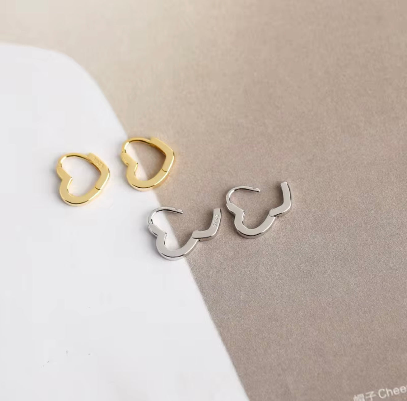 The Lissie heart huggies are a great easy earring to wear! I wear my in my thirds and Lissie has hers in her seconds! They are in sterling silver of anti tarnish gold.