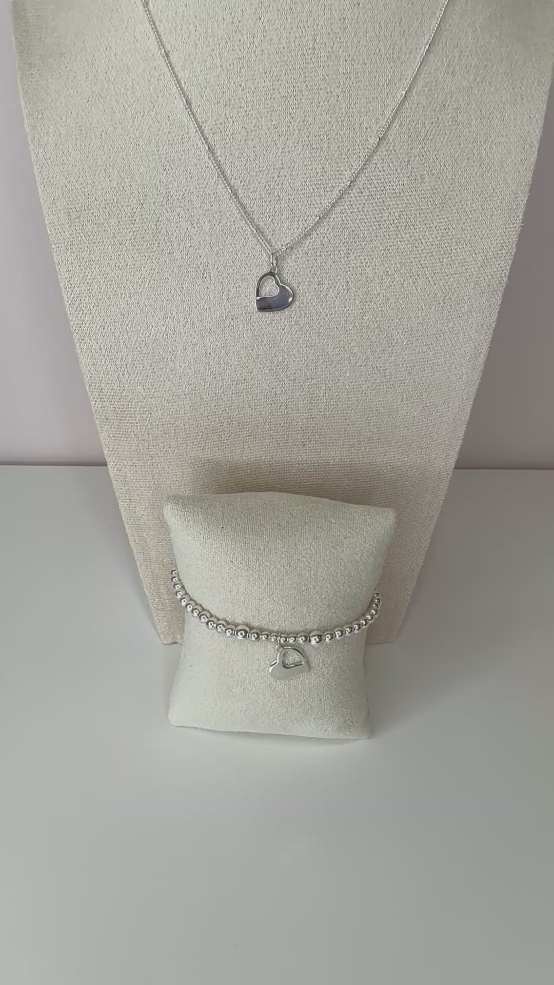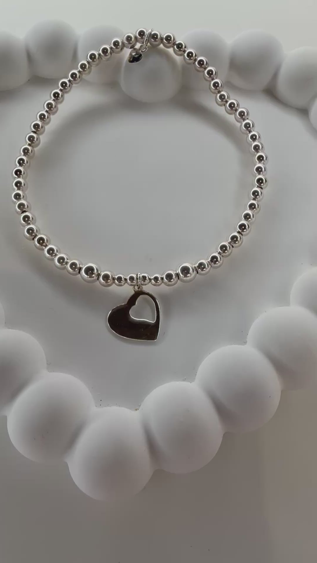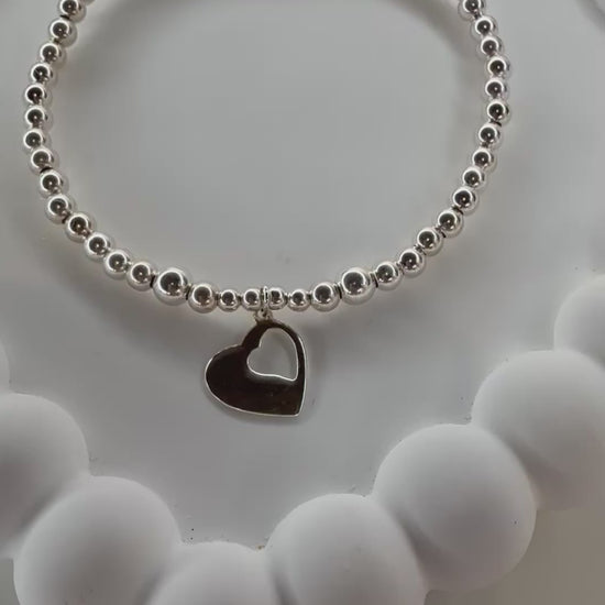 Made with sterling sliver 4mm beads on strong beading elastic set with the two in one heart charm.