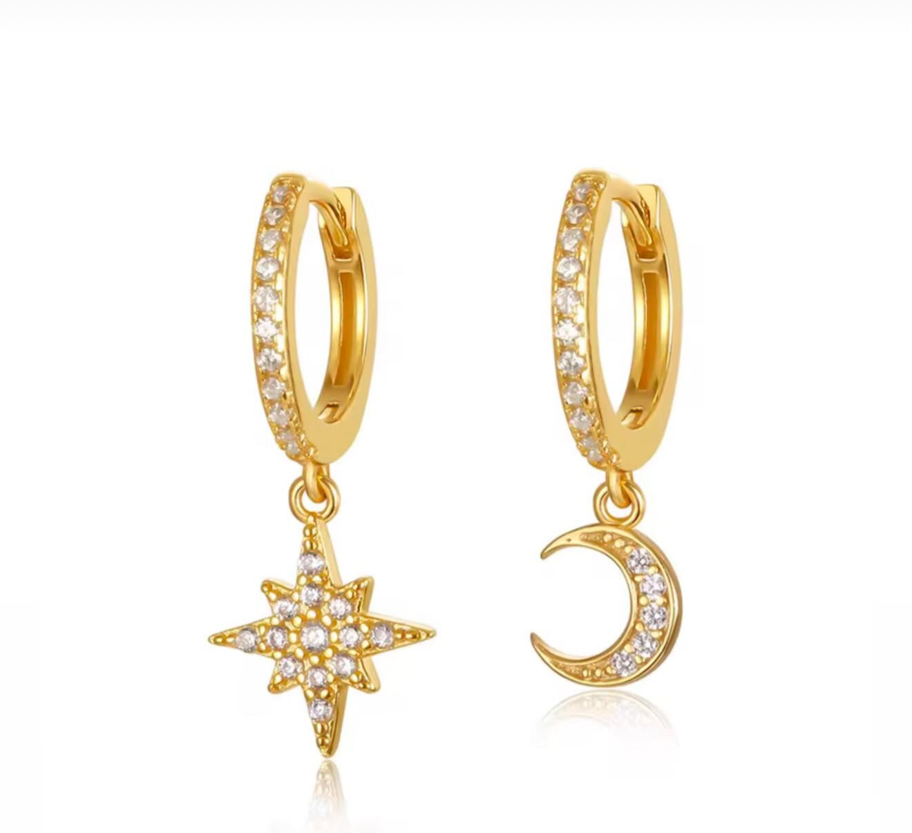 These beautiful Moon and Star Mini Huggies, available in sterling silver or anti tarnish gold plated, will add a touch of tiny gem stones.