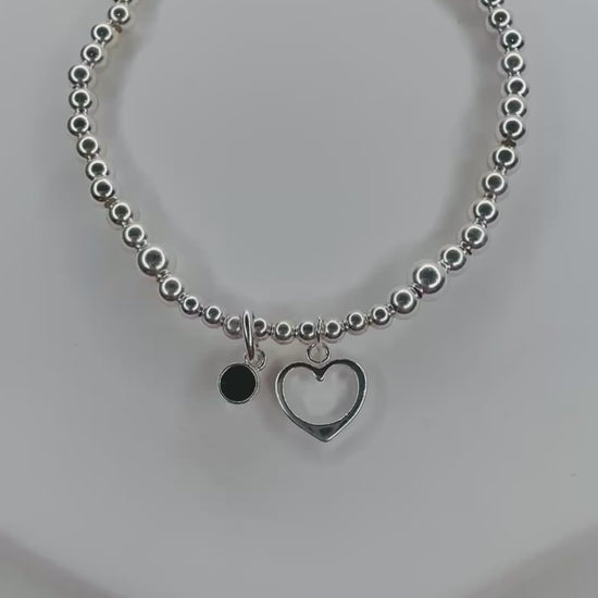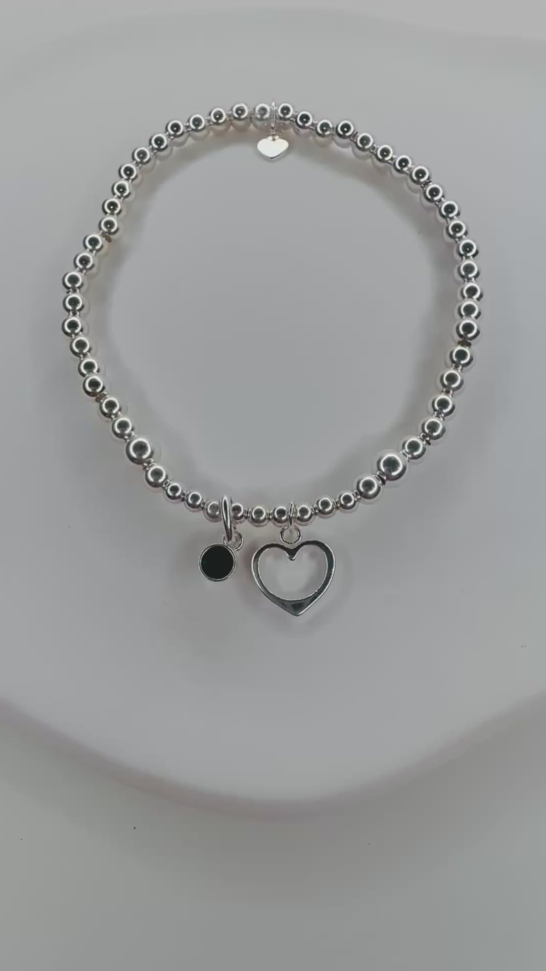 This is a sterling silver 10mm open heart charm, which can also buy as a ready made bracelet. You can add this heart to any bracelet and it sits great with a birthstone and a initial.
